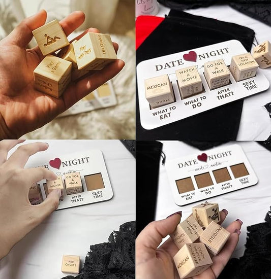 Date Night Dice for Couples, Date Night Ideas Dice After Dark Edition, Funny What to Do Wooden Couple Dice for Married Couples, Valentine's Day Anniversary Birthdays Gift (Wood Color)
